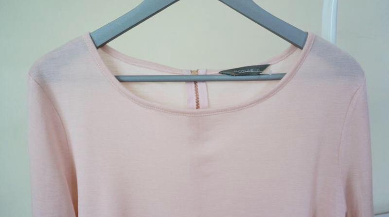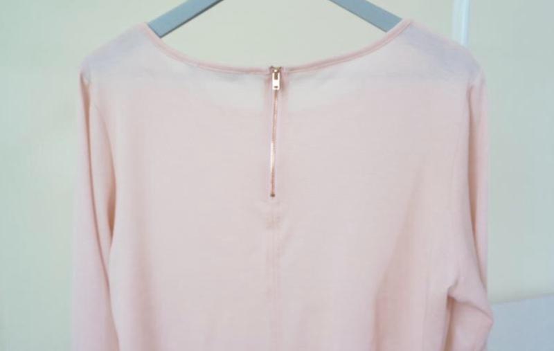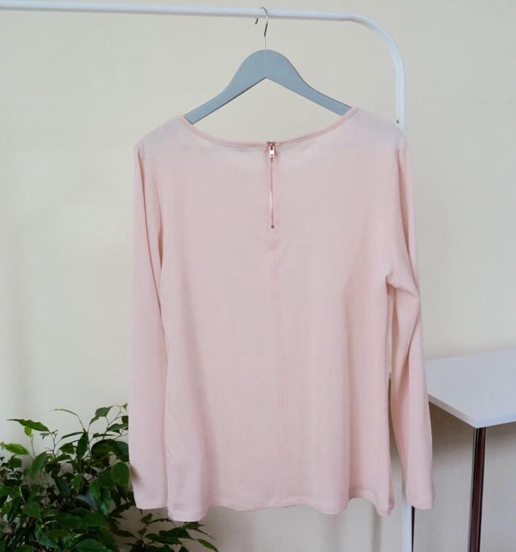 Тонкий свитерок пудрово-персикового оттенка. Сзади молния. Указан размер XLПлечи 42ПОГ 57Длина 70Рукав 64По низу 57Состав: 50% шерсть, 50% акрилНовый, без бумажной бирки