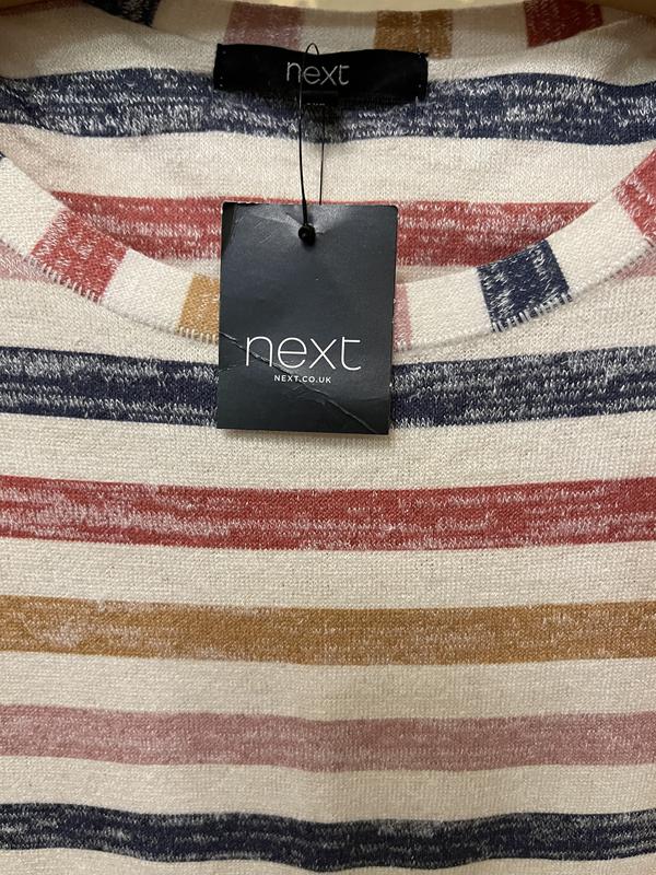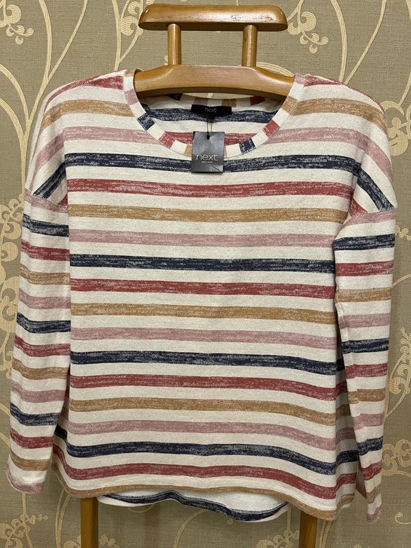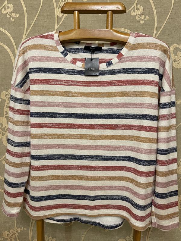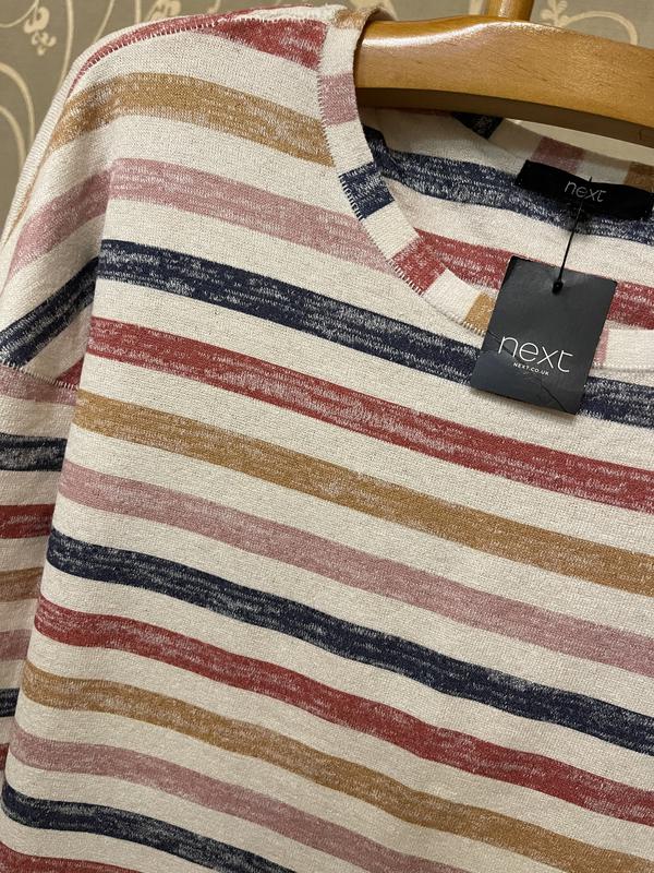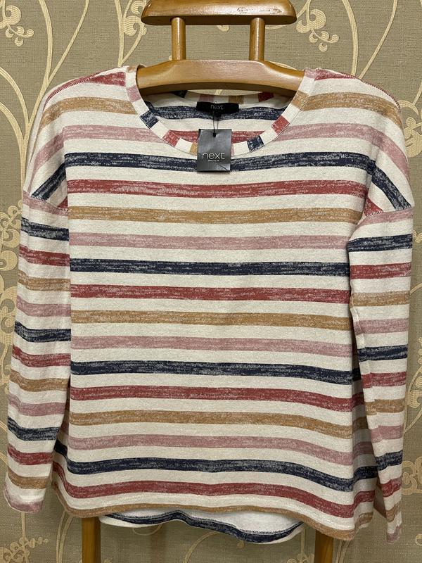 Предлагаю вашему вниманию очень красивую и стильную брендовую кофточку в полоску (в живую смотрится гораздо интересней и цвет более насыщенный). Фирма NEXT. Размер указан 14. Состав: 43% вискоза, 54% полиестер и 3%эластана..ткань мягкая и приятная к телу, хорошо тянется. Новая. ПОГ-56+ещё тянется, длина-60, по спинке немного длинней-65, плечи приспущенные.. длина рукава от ворота-65, ширина по низу-57+ещё тянется. ВНИМАНИЕ!!! При покупке три и более моих вещей-бесплатная доставка посылки Новой почтой. Удачных покупок:)