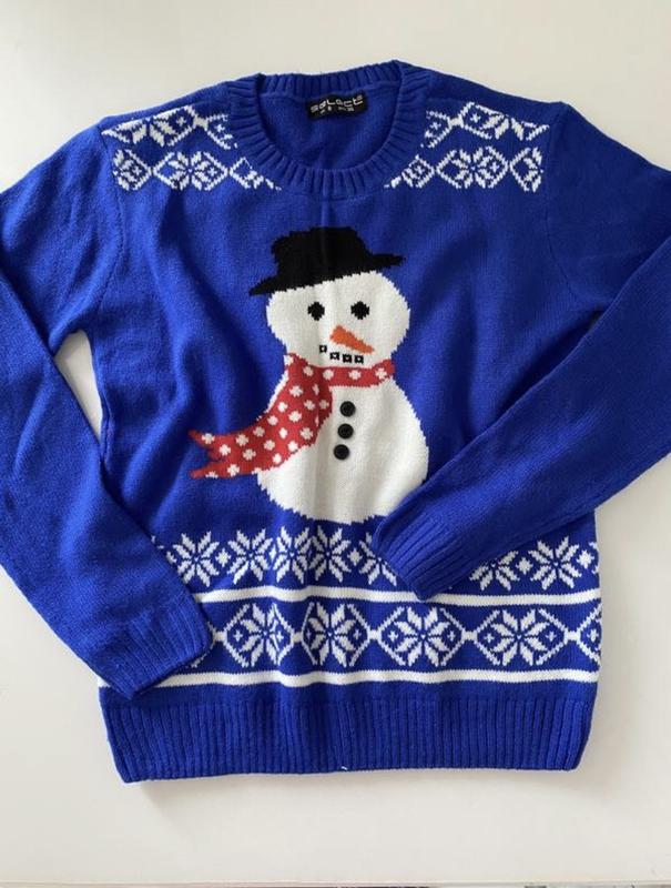 Свитер с новогодним принтом, очень тёплый и приятный к телу, перед твухслойный