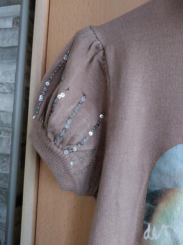 Свитер с коротким рукавом фонариком коричневого цвета. Турция