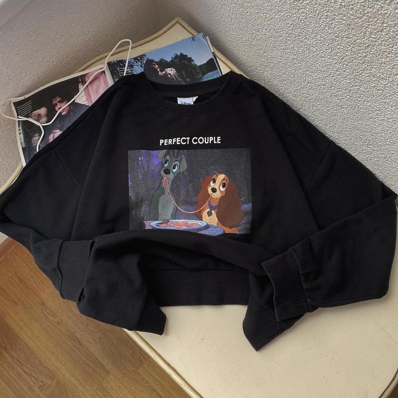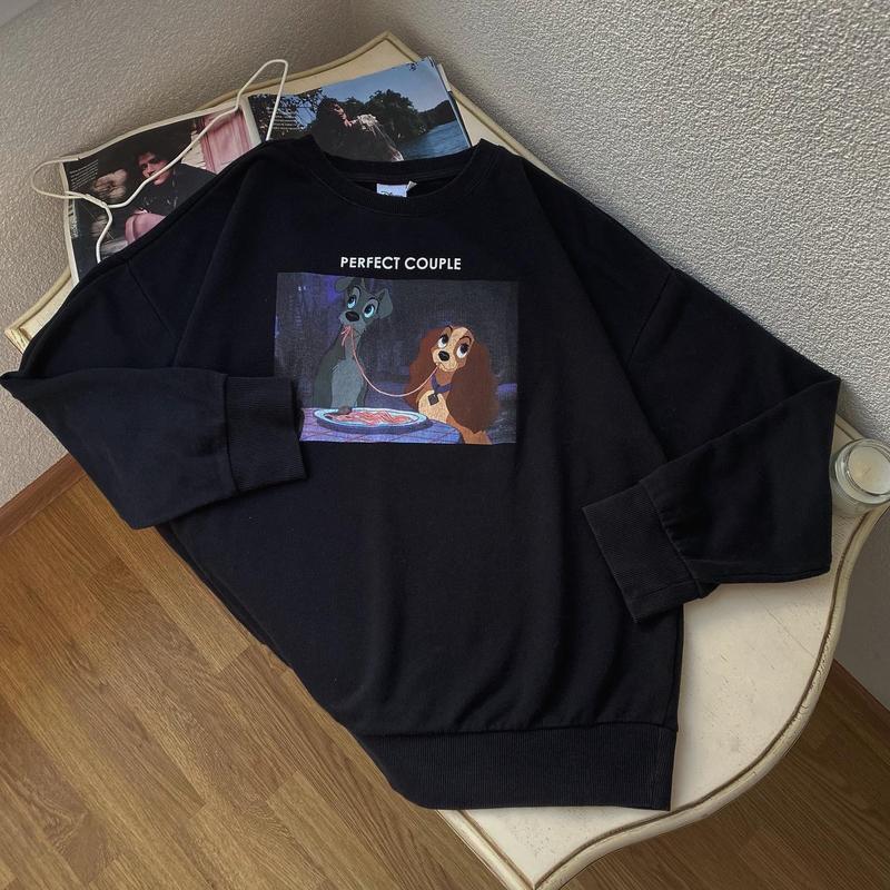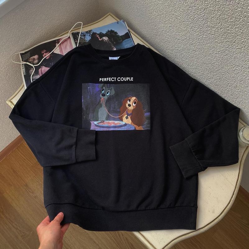 🤍классный коттоновый черный свитшот Disney с песиками из мультфильма🥰свободного кроя Размер S,можно и на МСтан - идеальный