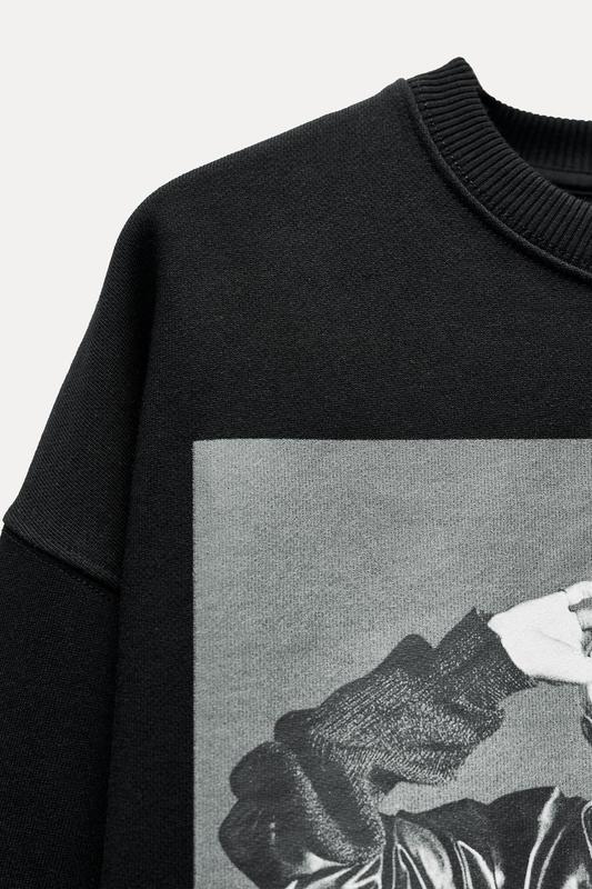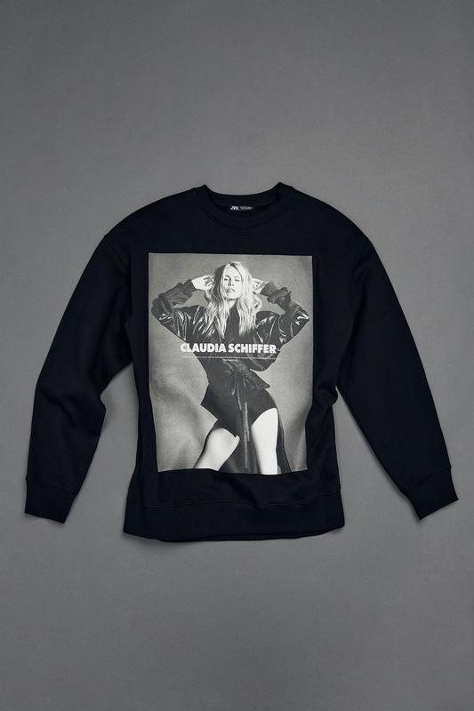 Свитшот из штапельной ткани на основе хлопка с круглым воротом и длинными рукавами. Claudia Schiffer с фотографическим принтом спереди. Окантовка в рубчик по краях.