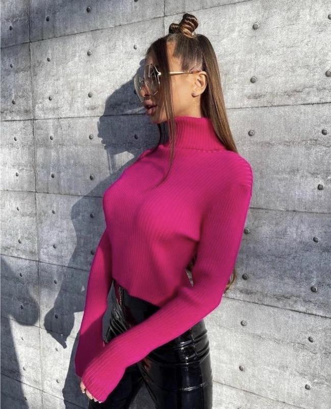 Укороченный гольф, ярко-розовый цвет, Размер С/М, идет как оверсайз, трикотаж рубчик, мягкий и приятный к телу. Производитель Украина, не ZaraДлина 44, ОГ 46, ОТ 43, рукав 62.Еще есть черный цвет, зеленый и бежевый.