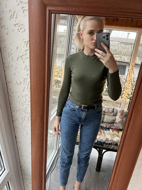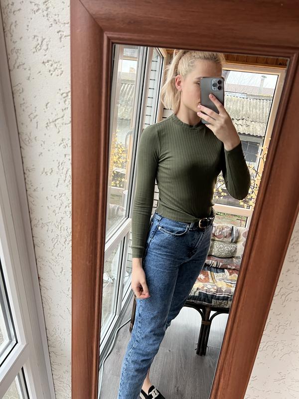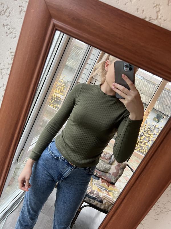 Лонгслив водолазка укороченная хаки рубчик мягкая водолазка топ