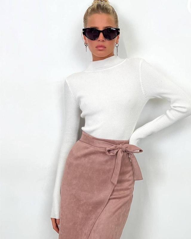 Трикотажный базовый гольф стойка в рубчик водолазка под шею горло с длинным рукавом по...