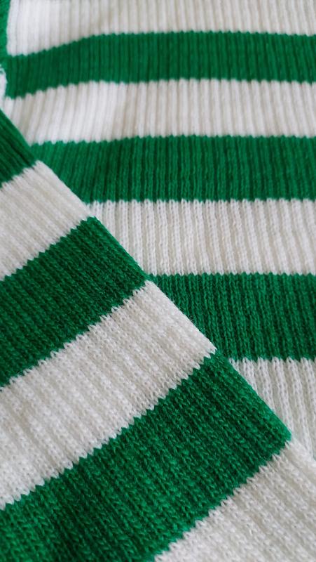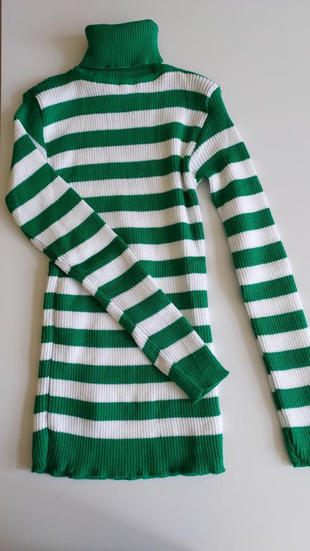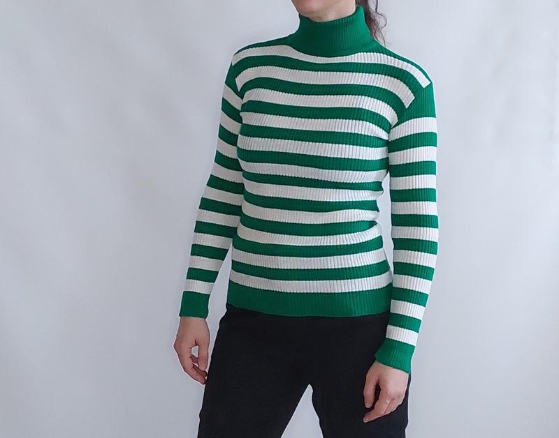 Смугастий гольф у рубчик з високою розтяжністю. З довгими рукавами та коміром-стійкою.