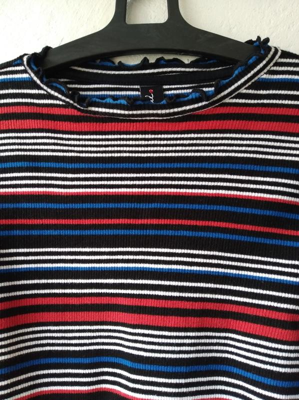 В идеальном состоянии, как новый, никаких следов носки и дефектов нет! Ооочень красивый и стильный женский гольфик в полоску! Отличное качество ткани, 95% котон! На рост 170-176 см. Ворот, рукава и низ волнистые. Рукав на конце немного расширяется в трапецию. Очень насыщенные оттенки, которые красивейшим образом сочетаются между собой! Фактура ткани похожа на рубчик. В низу гольфа, в одном из углов есть фирменный металлический логотип. Очень качественная, стильная и красивая вещь!