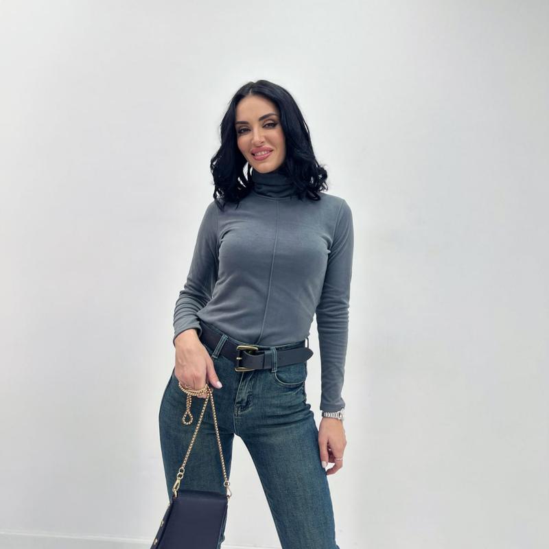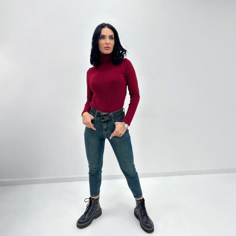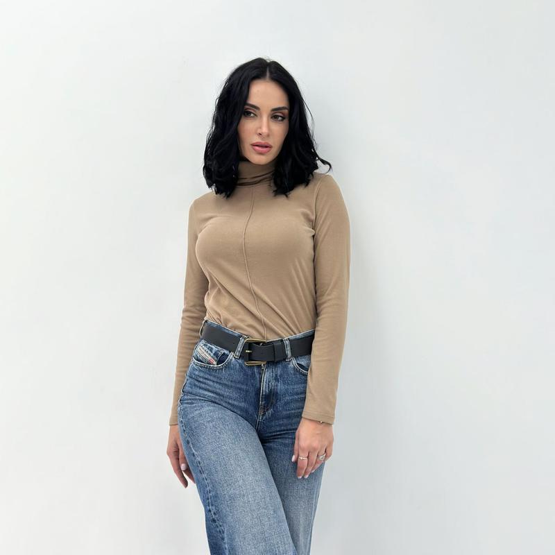 Жіноча тепла базова водолазка має приталений крій, довгі рукави та високу горловину. Спереду виріб прикрашений декоративним рядком по всій довжині. В наявності п'ять базових відтінків, без яких важко уявити осінньо-зимовий гардероб сучасної жінки.