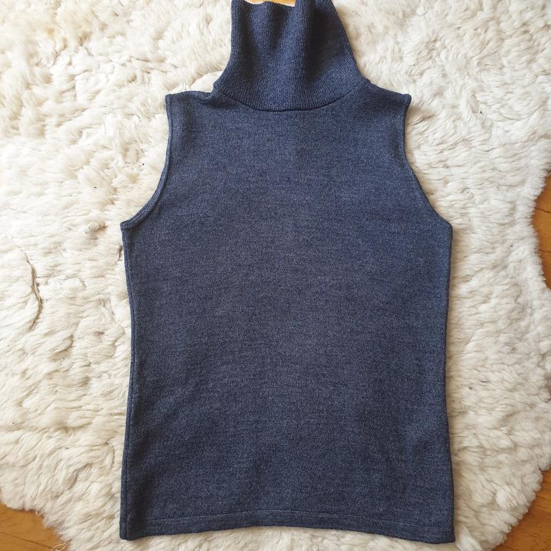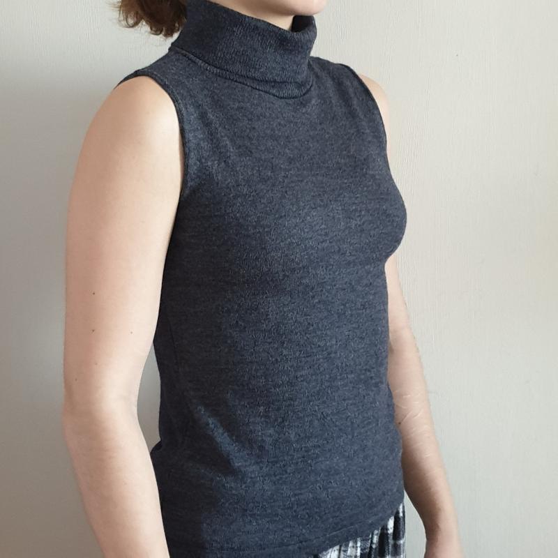 Серая с синим меланжевая водолазка гольф без рукавов. Ткань: шерсть и вискоза. Заміри на фото.