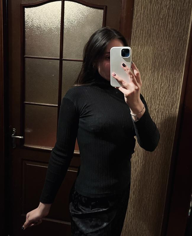 Отдаю женскую водолазку в рубчик, цвет черный. Водолазка размера М, но подойдет также и на С-ку.Надежная на параметры: 90-70Замеры:•длина рукава от шва 51 см:•длина от горла 60 см.
