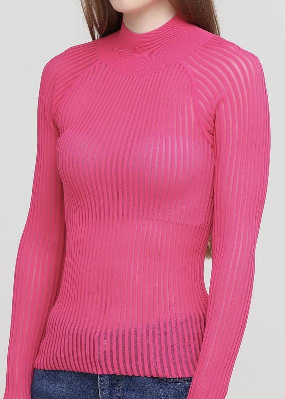 Стильный, актуальный яркий гольф/водолазка в розовом цвете полупрозрачный (с полосками в сеточку). Указан размер л (подойдет на с-м )
