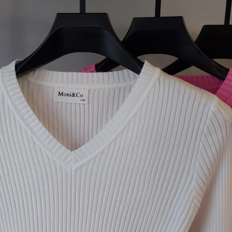 Джемпер в мелкий рубчик с v-образным вырезом Moni&Co🇮🇹 с шелком и кашемиром