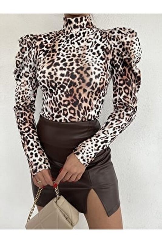 Красивая блуза из неопрена в animal принтПерчатки фонарики красиво держат формуСзади застегивается на две пуговицыТкань туга, тянется совсем немножко Подойдет на Рр хс-с