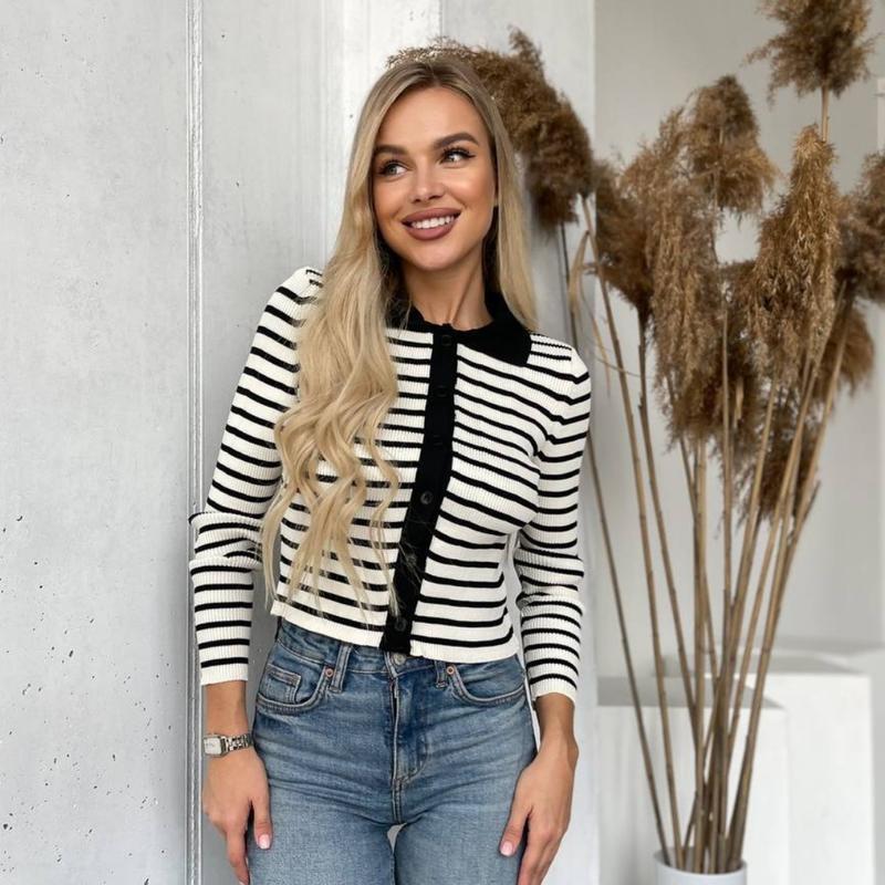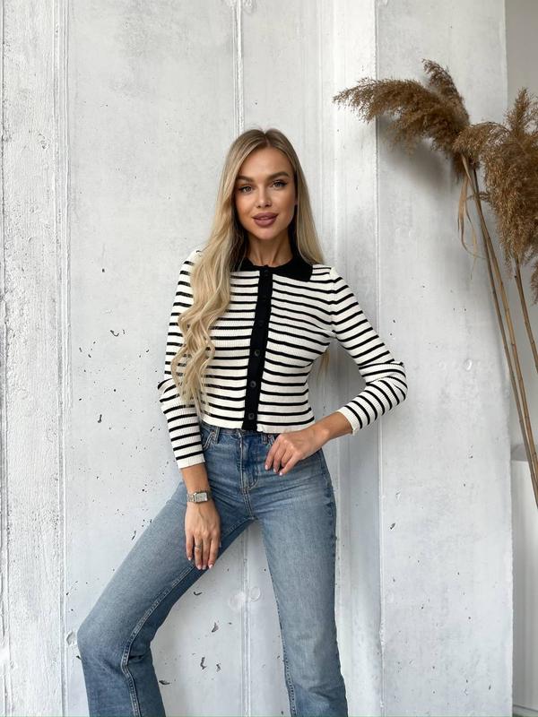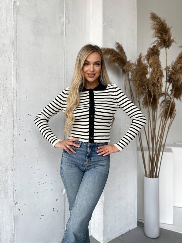 🥰Новинка Короткий кардиган с пуговицами в смужку 🤍 ▫️Модель: 050 ▫️Производитель Турция (отличного качества👌) ▫️Цвет: как на фото ▫️Размер: универсальный