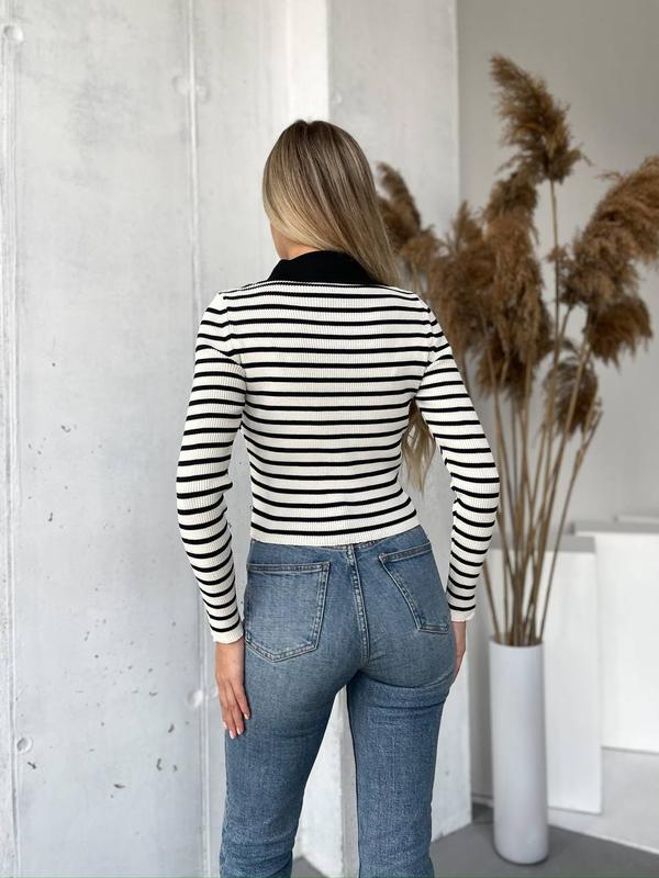 Кофта женская черно была в полоску на длинных рукав на пуговицах качественная стильная...