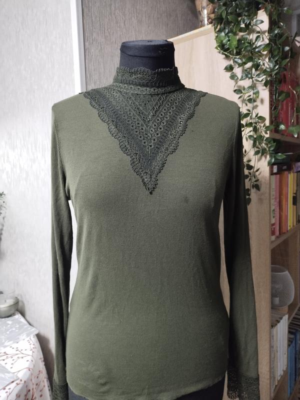 Турецкий гольфик / водолазка / свитерик цвета хаки с кружевом