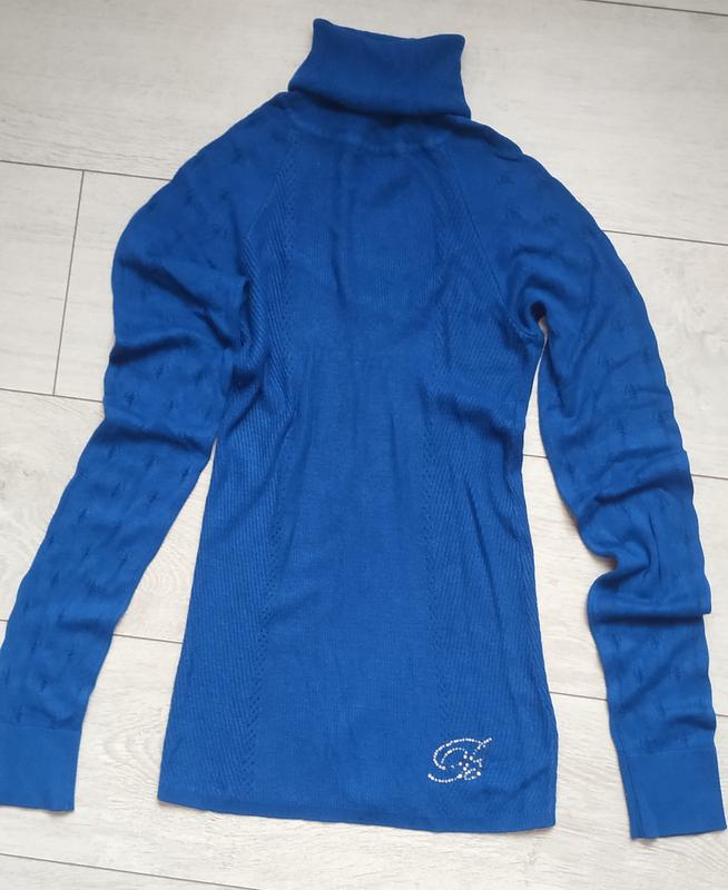 Теплый качественный гольф.Катышек нет, состояние отличное. Единственный момент - отпали некоторые стразы ( видно на фото)Замеры:Под проймой - 32Длина - 59