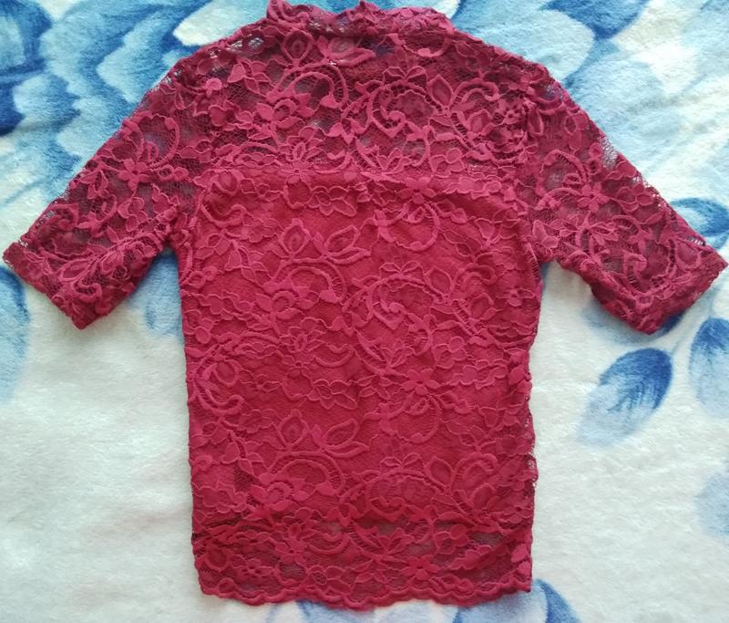 Гипюровый гольфик с рукавом до локтя. Бренд - H&M (Divided). Производство - Камбоджа. Размер - XS (34). Цвет - бордовый. Материал верха: полиамид - 95%, эластан - 5%, материал подкладки - полиэстер - 100%. Длина - 56 см, грудь - 35 см, талия - 33 см, длина рукава - 25 см. Гольфик с воротником - стоечкой, грудь и спина - на подкладке, верх и рукава - прозрачный гипюр. Состояние - новый.