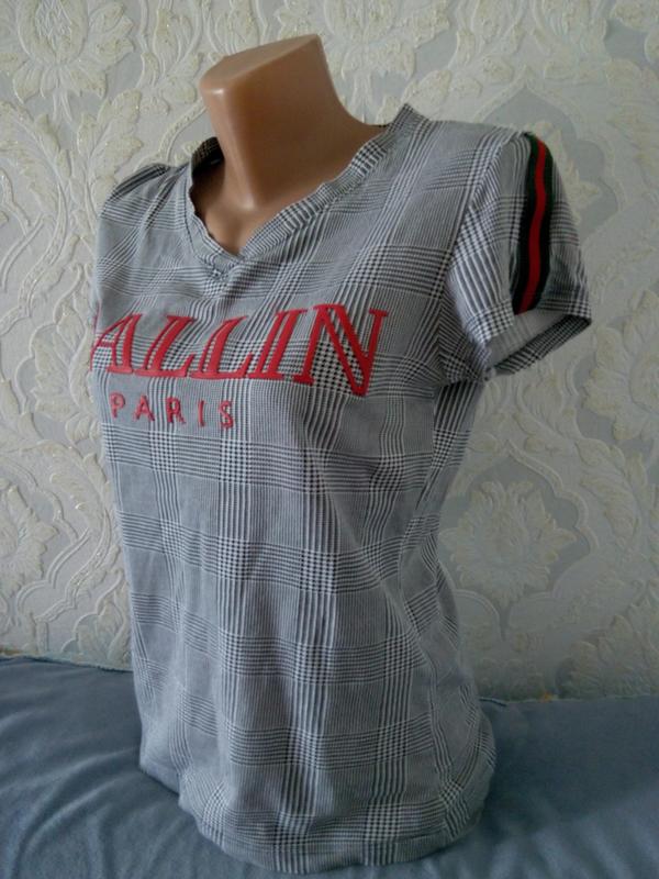 Стильна фірмова футболка. Підходить під любий стиль і образ. На розмір С-М, М. всі заміри по бажанню. Сірий з білим колір.