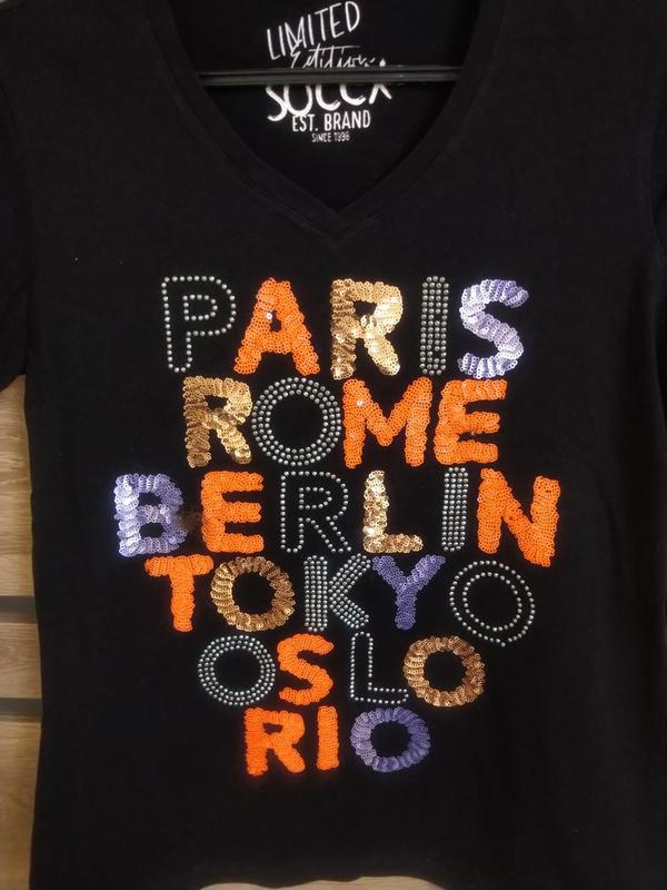 прикольная футболка с буквами Soccx, плеча-37см, ПОГ-44см, ПОБ-50см, длина-61см.