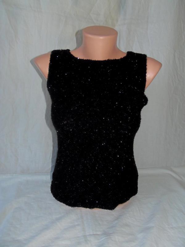 безрукавка женская,футболка р.12 в отличном состоянии,без дефектов,нитка люрексоваядлина 50см,плечо 6см,плечи 31см,под мышками 44см,пояс 39см,по низу 44смотправка после оплаты
