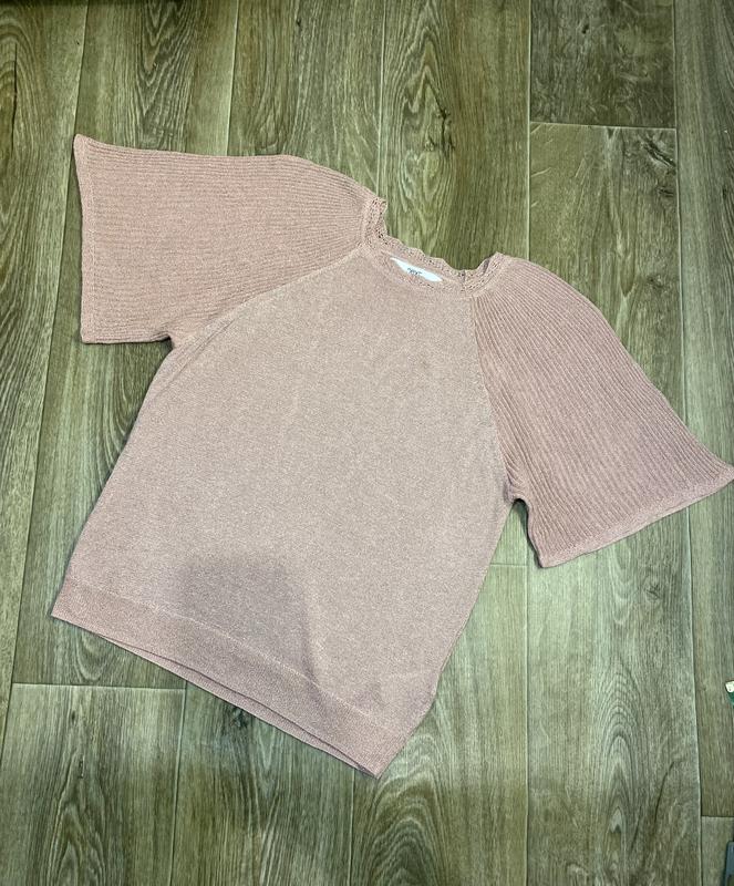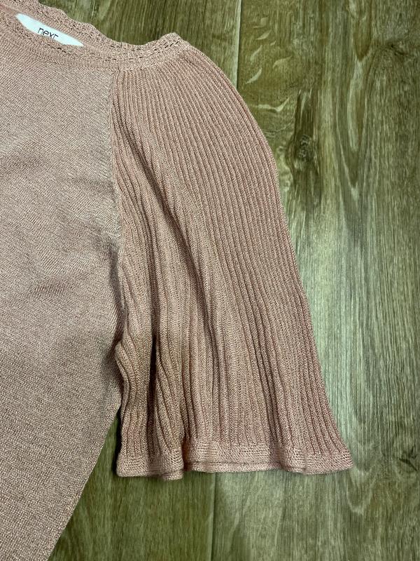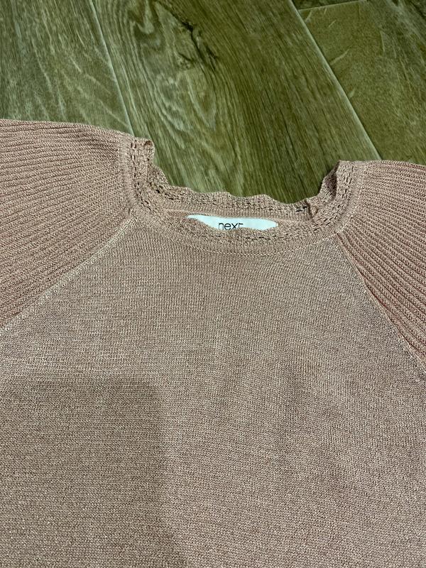 Футболка Next тонкая вязка с люрексной нитью. На фототирала попытка передать блеск и нежный цвет футболки. Размер EUR 34. Стан идеален!