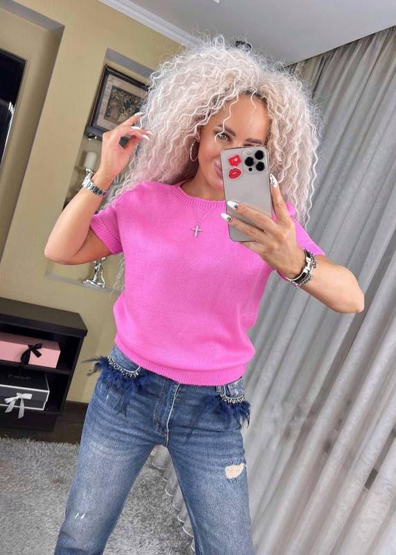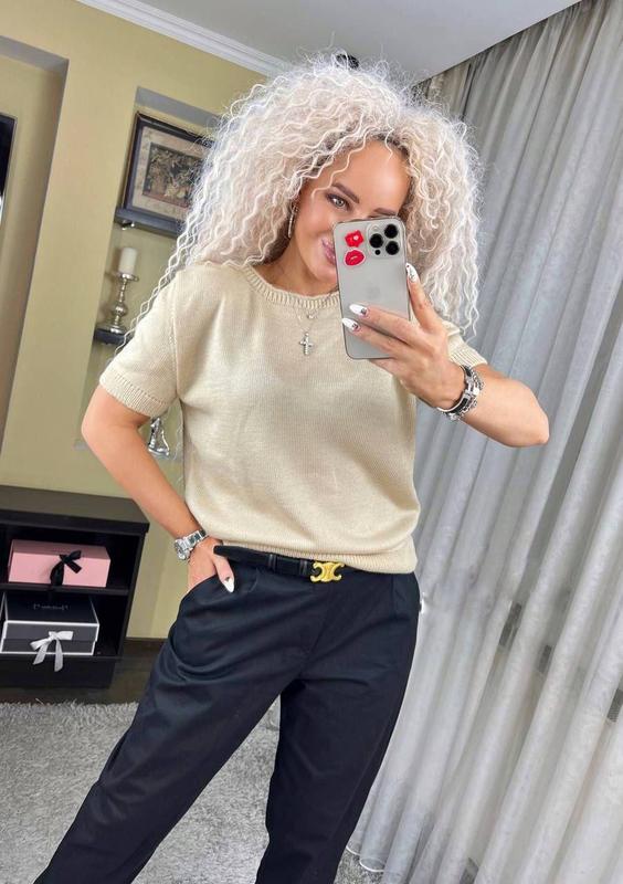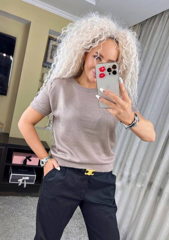 Базовая женская вязаная футболка «МИЯ». Стильная женская футболка станет основой для ваших повседневных и деловых образов. Модель полностью выполнена из летней машинной вязки.