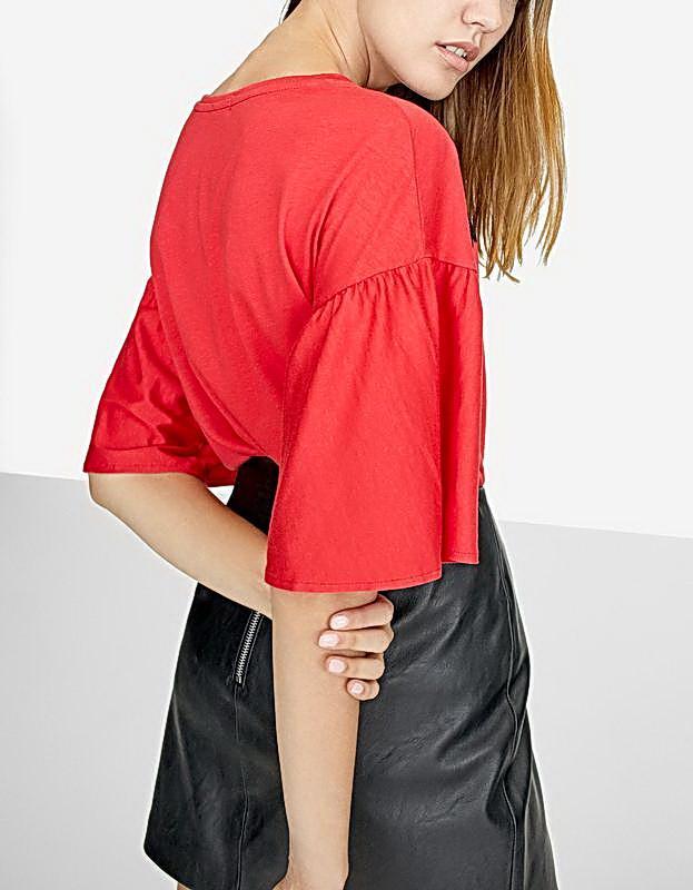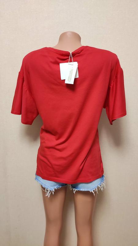 Стильная женская футболка от Stradivarius (Испания). Модная и актуальная цветочная аппликация! Оригинальный при-собранный рукавчик!! Мягкая приятная ткань! Размер S.Длина от плеча 63 см,ПО груди 48 см.