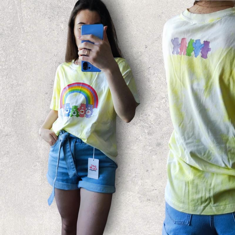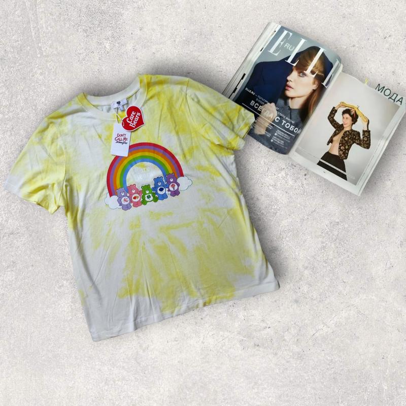 Футболка яркая для лета, яркий рисунок мишек Card bears спереди, маленькие сзади. размет S oversizeодето на S рост 164, грудь 86, талия 68, бёдра 93