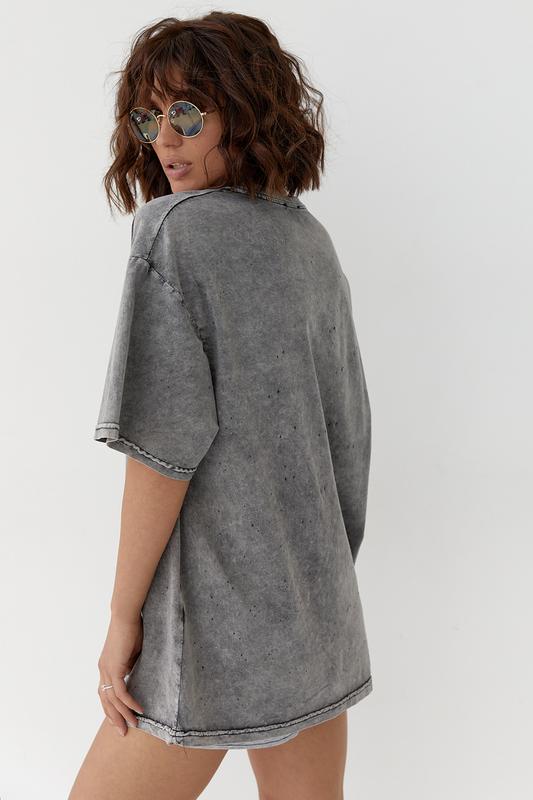 Наша новинка, кроме качественной ткани в технике тай-дай, имеет еще модный принт спереди и дополнена мелкими дырочками - модным трендом 2023-2024. Изделие имеет oversize фасон, опущенную линию плеча и окантовку на горловине.