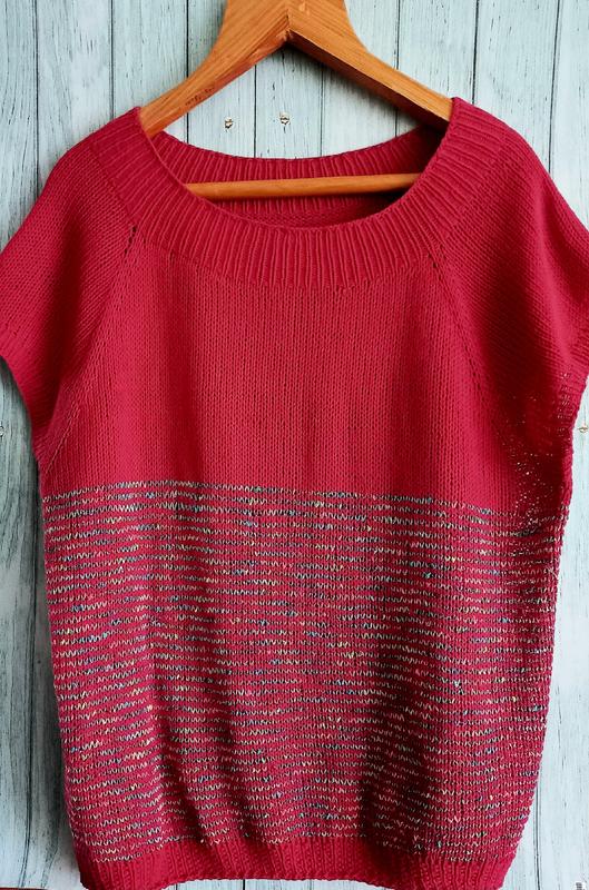 Стильная летняя вязаная футболка с коротким рукавом ручной работы. Вязаная из нежной полухлопки, украшена цветной фантазийной нитей "шишибрики".Размер: оверсайзДлина изделия 68 см, ОГ - 120 см