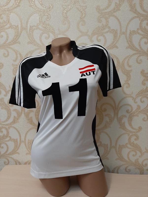 В отличном состоянииСистема Climacool для отвода влаги с телаЭластичная, хорошо тянетсяДлина 62 смШирина под рукавами 44 смВ талии 41 см