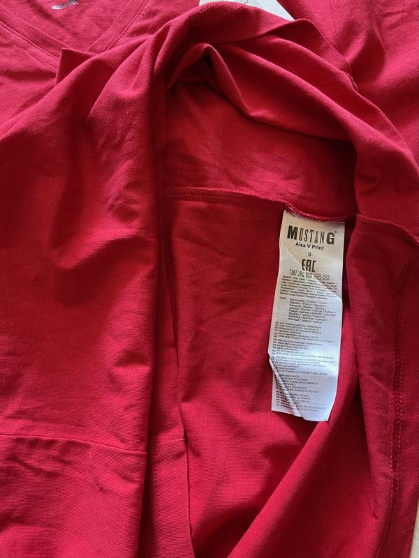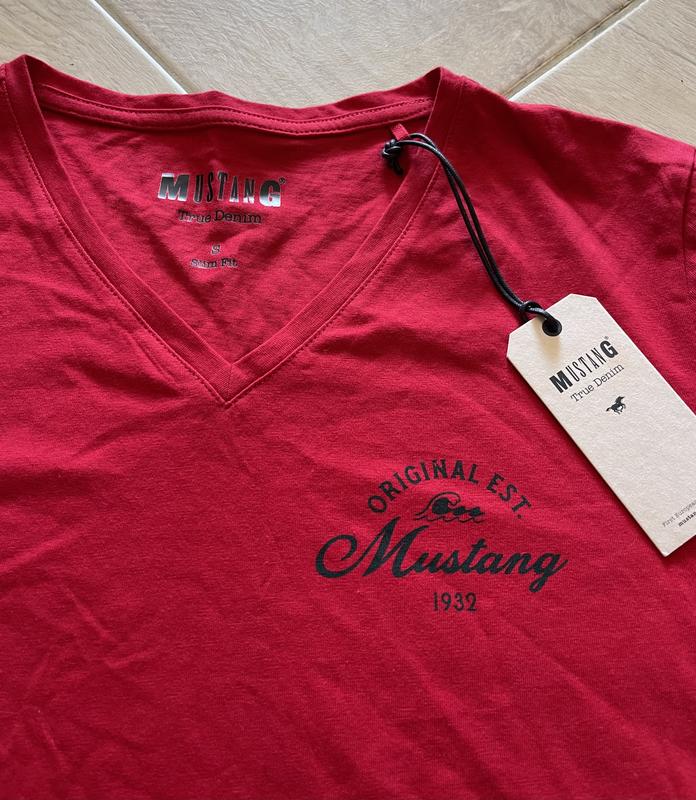 Футболка бренда Mustang. Размер S-М.Новая с биркой. Состав: 100% хлопок. Цвет красный. Замеры: длина 69 см, пог 50 см, плечи 42 см, рукав 23 см.
