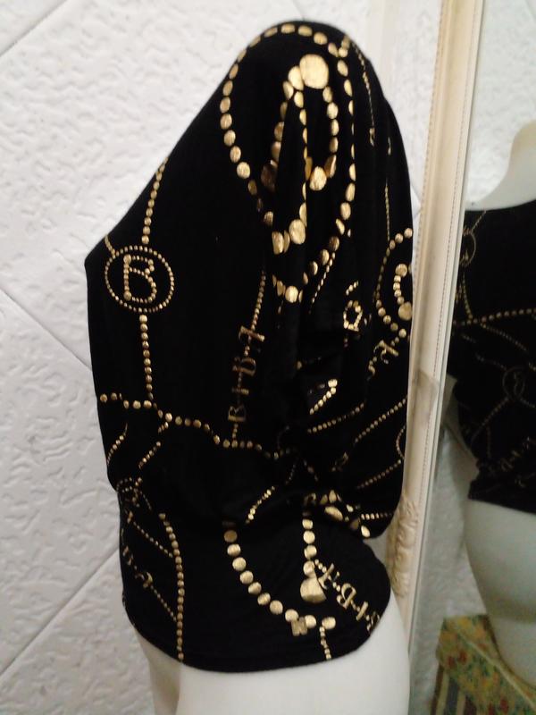 Без недостатков. Все этикетки срезаны. Очень приятная на ощупь. Скорее всего, всего из вискозы. Хорошо тянется, не прозрачная. Рисунок не сыпется, без трещен. На 44размер.На розетке така футболка коштує 1700грн
