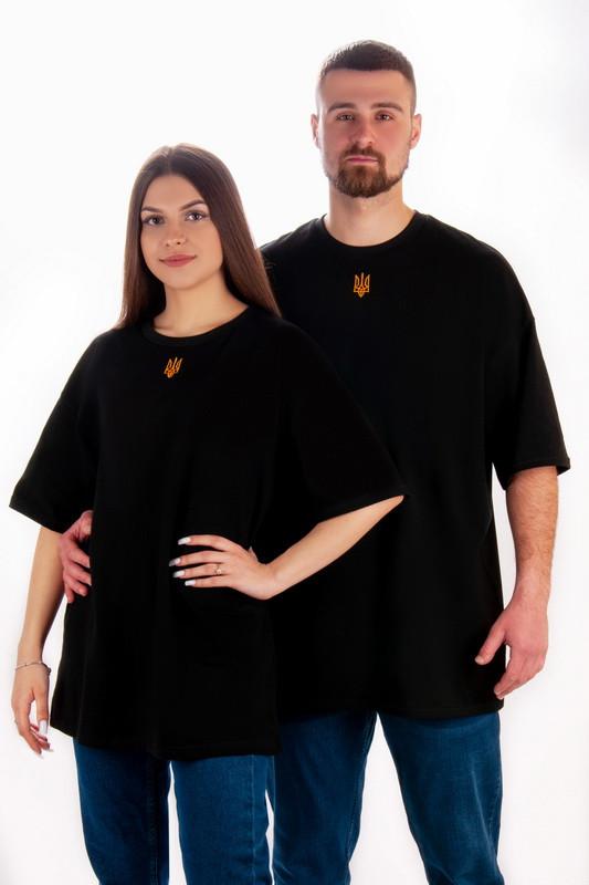 Футболка ОВЕРСАЙЗ, с вышитым гербом, размеры: 48, 50, 52. Склад тканини: 95% бавовна, 5 % еластан. Качество отличное. Также есть в продаже мужские ( 50, 52, 54), и детские ( 104, 110, 116)