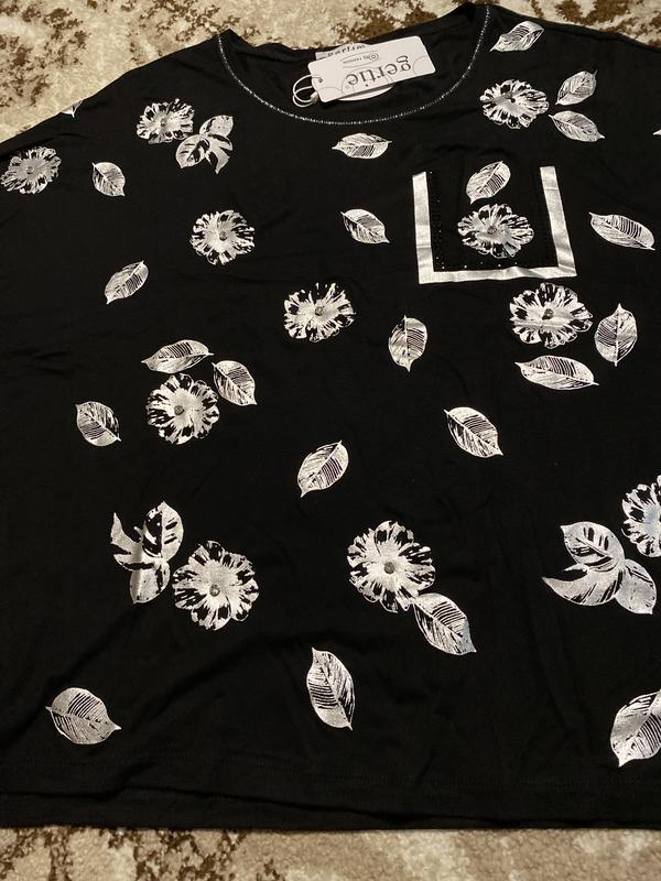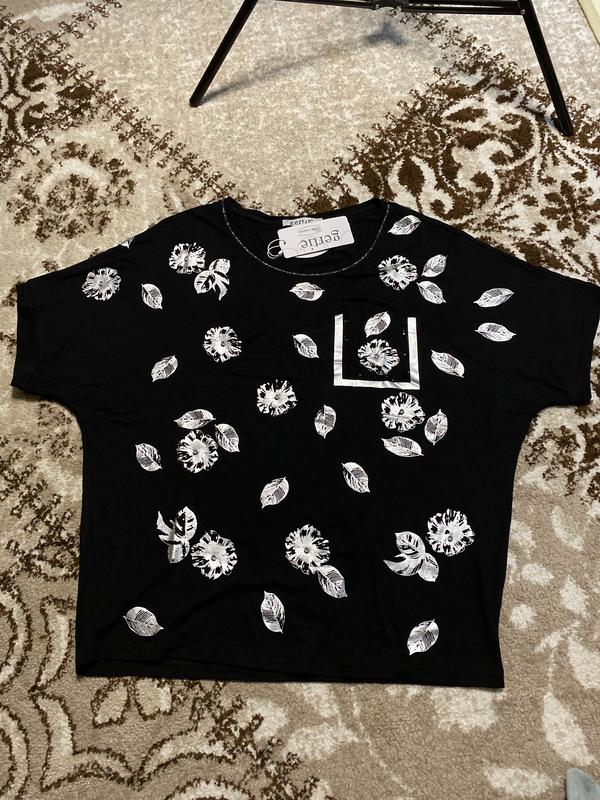 Коттоновая декорированная футболка черного цвета 52-54 размера