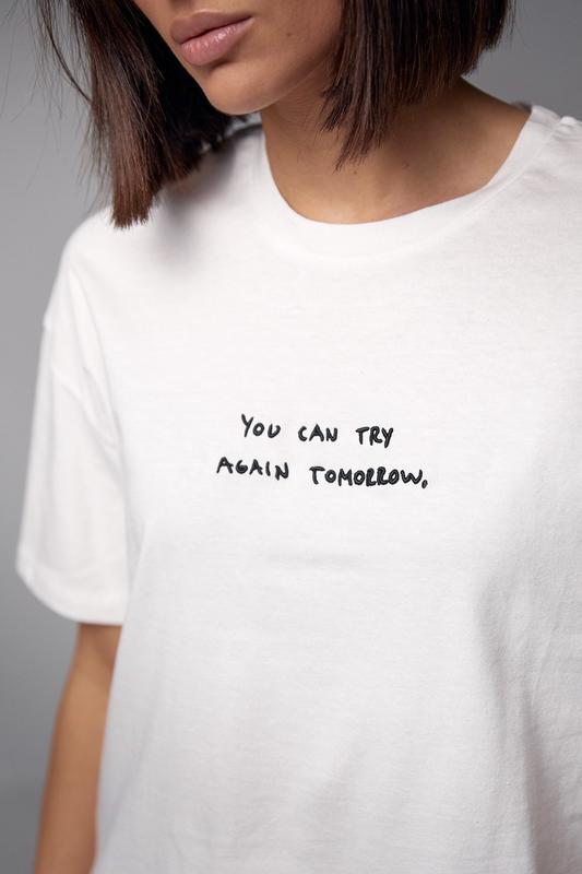 🔹Женская БАВЛЕННАЯ ФУТБОЛКА С ВЫШИТОЙ НАПИСИМ🔸Лаконичный крой дополнен стильной вышивкой в виде надписи. Комфортный фасон и легкость натурального хлопка дарят ощущение свободы и не сковывают движений.✔️Артикул: 2408 🔹Тканина: трикотаж (100% бавовна)🔹Размеры: S, M, L🔹Производитель: Турция