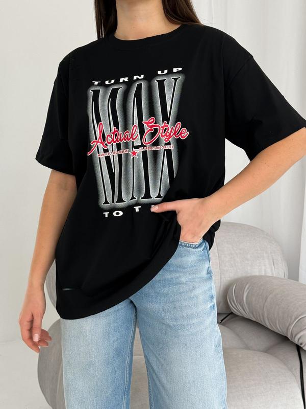 Трендовая женская футболка оверсайз с принтом.Производство Турция.Тканина : 95% котон, 5% еластан.Цвет: белый, черный, графит, голубой.Размер оверсайз : 42-46.Длина: 68 см.Обхват грудей : 110 см.