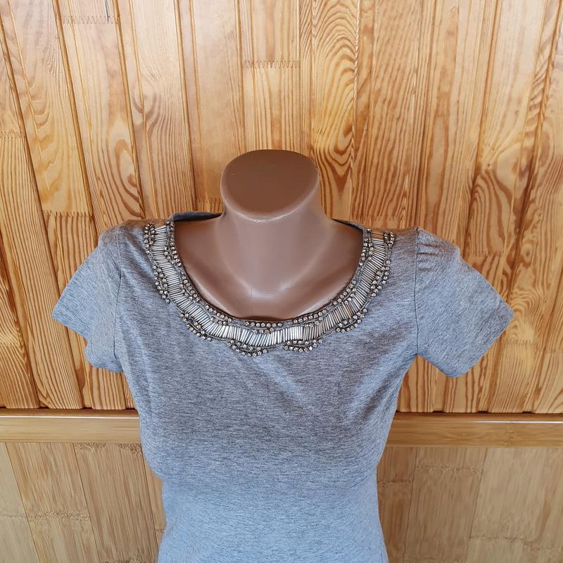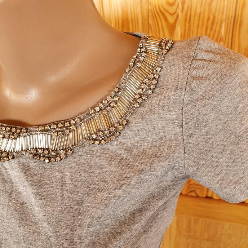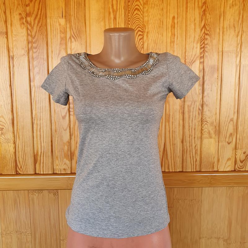 Стильная стрейч футболка с красивым воротником со стразами, все прошито Футболка немного тянется, подойдет на рост 172 см, на выше будет короткая Красавица на XS, небольшая S в отличном состоянии дефектов отсутствует