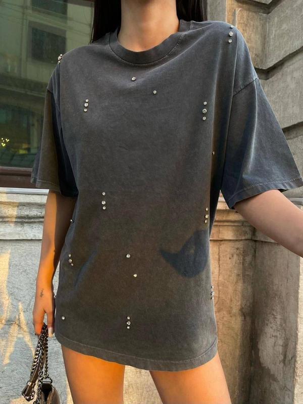 • Футболка - Модель: 7032-1553- Производство Турция- Размер: универсальный 42-46- Ткань: коттон + камни (убите) Длина -68 см
