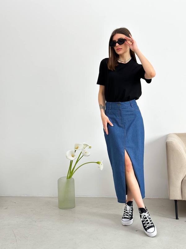 Базова футболка Ткань: турецкий кулир Состав: 95% хлопок 5% ликерЦвет: белый, черный500 грнБрюки и юбка тоже в наличии