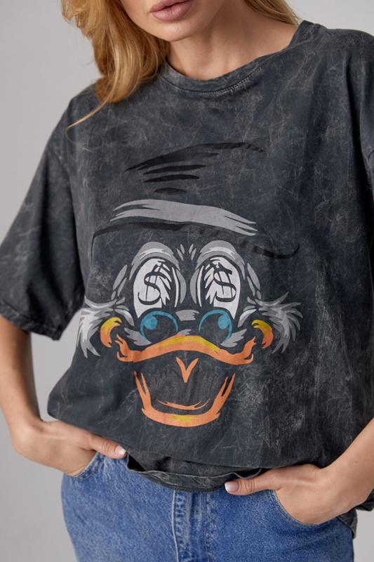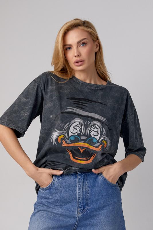 Принт с изображением Скруджа МакДака придает футболке детскую игривость и веселое настроение.