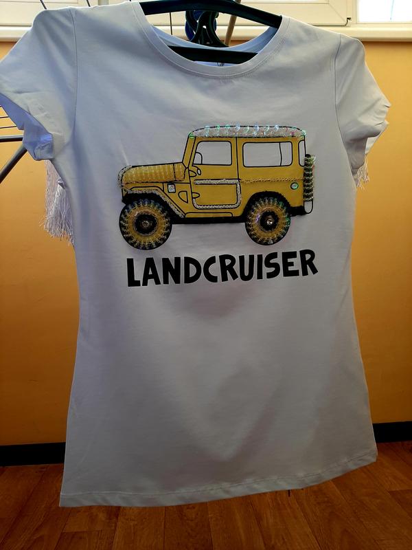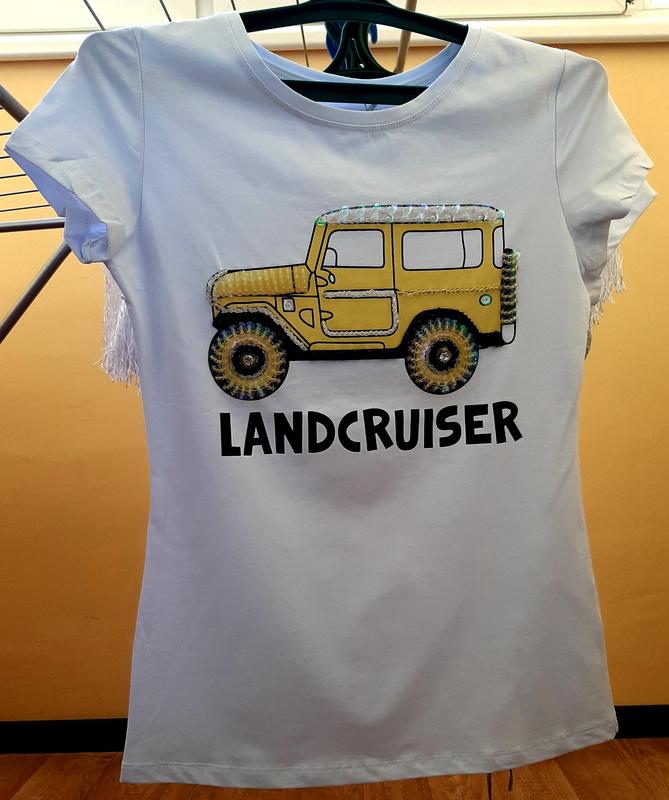 Дуде красивая футболка с ярко вышитым принтом 😍 , обратите внимание на то как красиво вышитые бисером колеса и капот 🔥ткань очень мягкая и дышащая, не кашлатится Скад : 95 % бавовна , 5 % еластан 💎Замеры:ПОП 34ПОГ 44 (тянется )