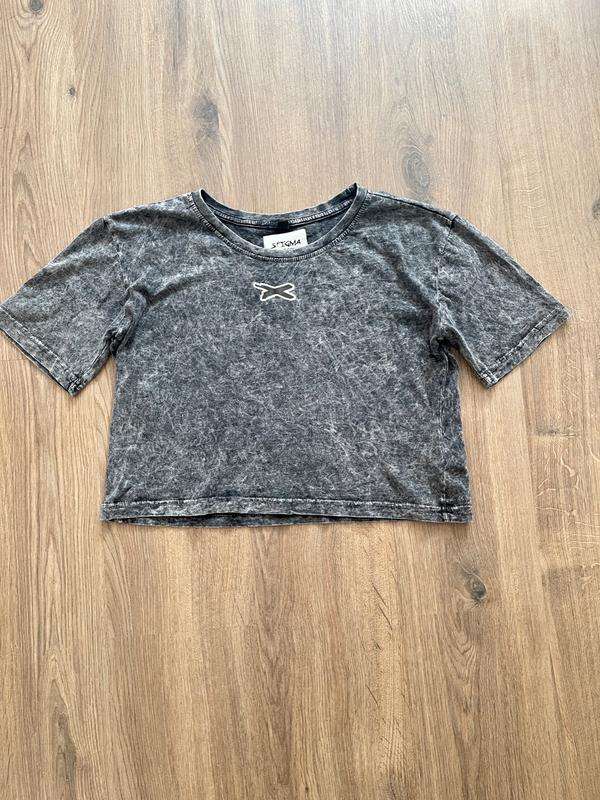 Футболка топ серая оверсайз укороченная стильная, скидка