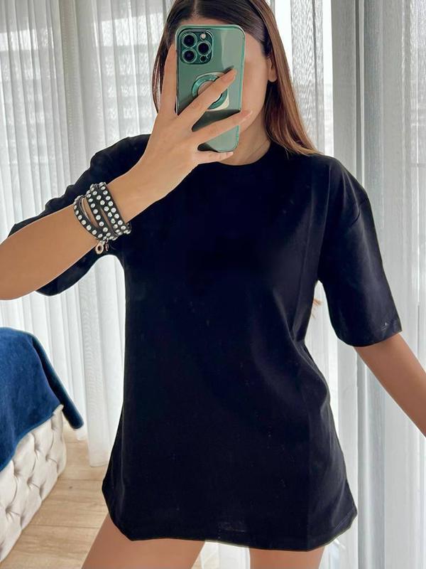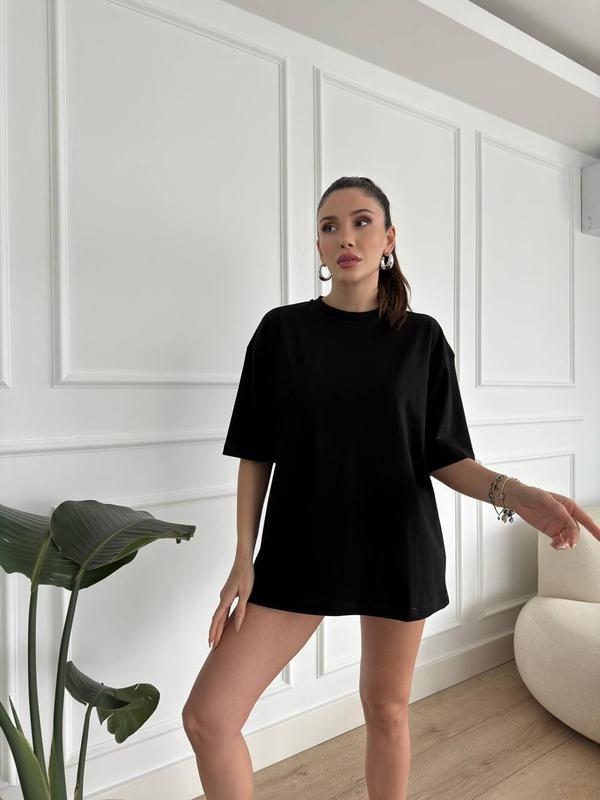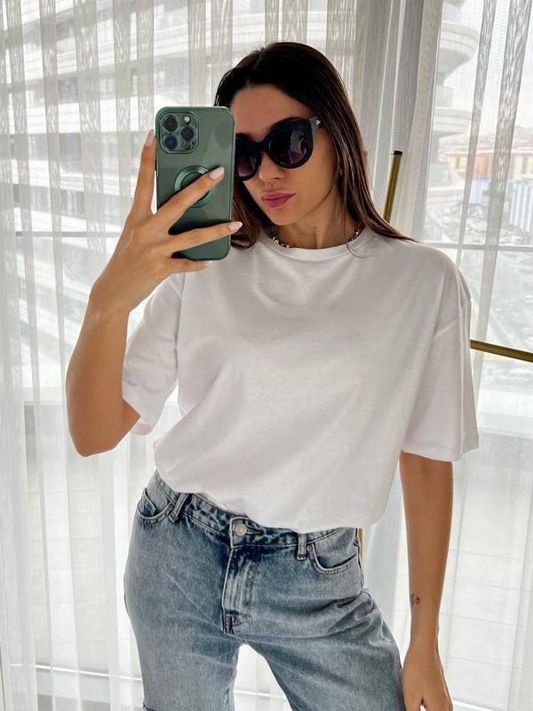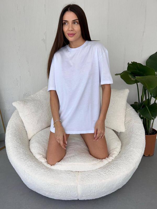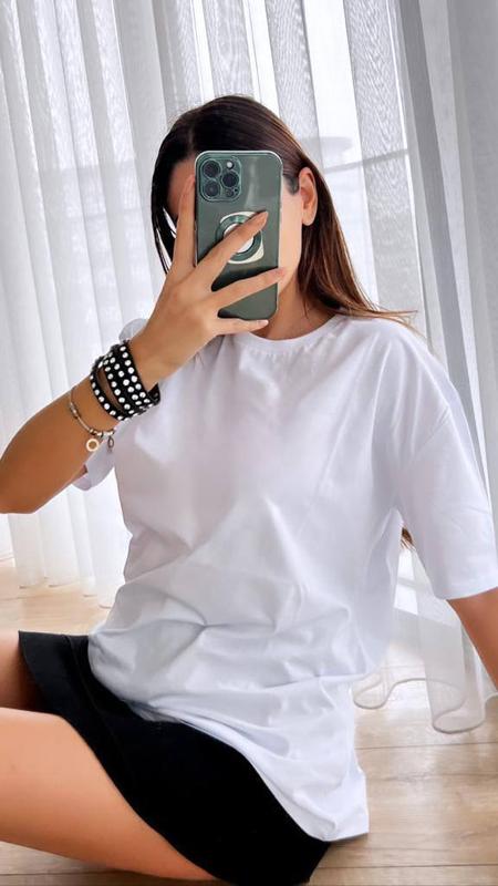 Базова однотонна футболка оверсайз 👑Любимая футболка в вашем гардеробе 👠Подходит под лосинчики, велосипедки 😍Легкая приятная к телу ткань не парит 📸