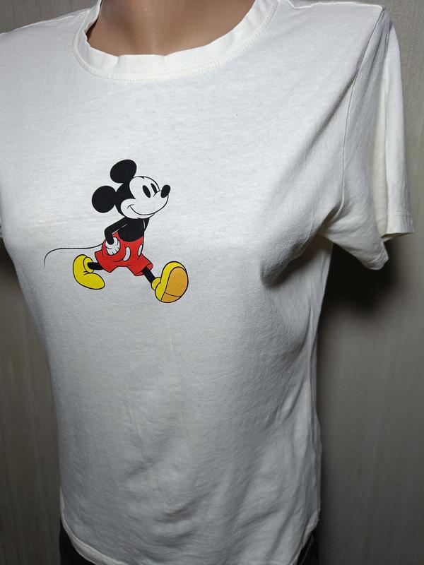 Футболка женская бежевая Микки Маус. молочная футболка с принтом Микки Маус размер S от бренда Primark. в идеальном состоянии. качество отличное.