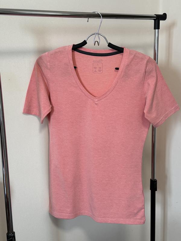 Женская базовая футболка EsmaraРазмер - S, но красиво садится и на МДлина изделия - 66 смПолу обхват груди - 43 см, тянется до 52 см