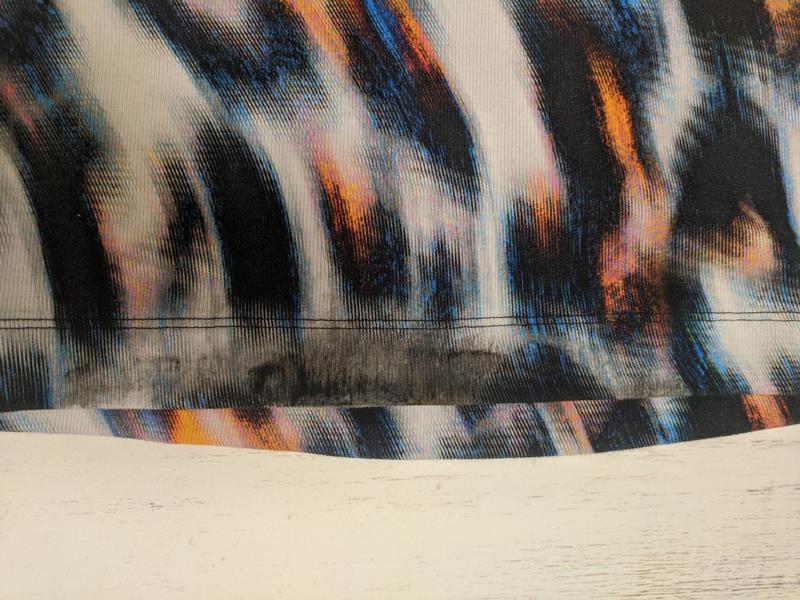 В целом то котаж и рисунок идеальны кроме: сзади по нижнему краю было посажено пятнышко которое владелица пыталась самостоятельно закрасить, выйшло неудачно, но в жизни всё не плохо:), возможно вам удастся закрасить или разрисовать успешнее:). В остальном всё ок👌🙏