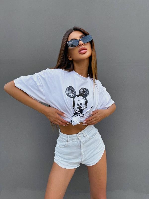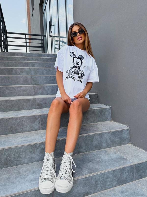 Футболка оверсайз з накаткою Mickey Love 👑 Легка приємна до тіла тканина не парить 📸 Улюблена футболка в вашому гардеробі 👠Якісна накатка ❤️
