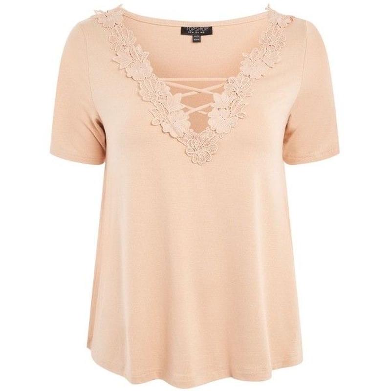Футболка с v-вырезом и кружевом Topshop Подойдет S/MДлина 60см Полуобхват груди 43см тянется, 55см